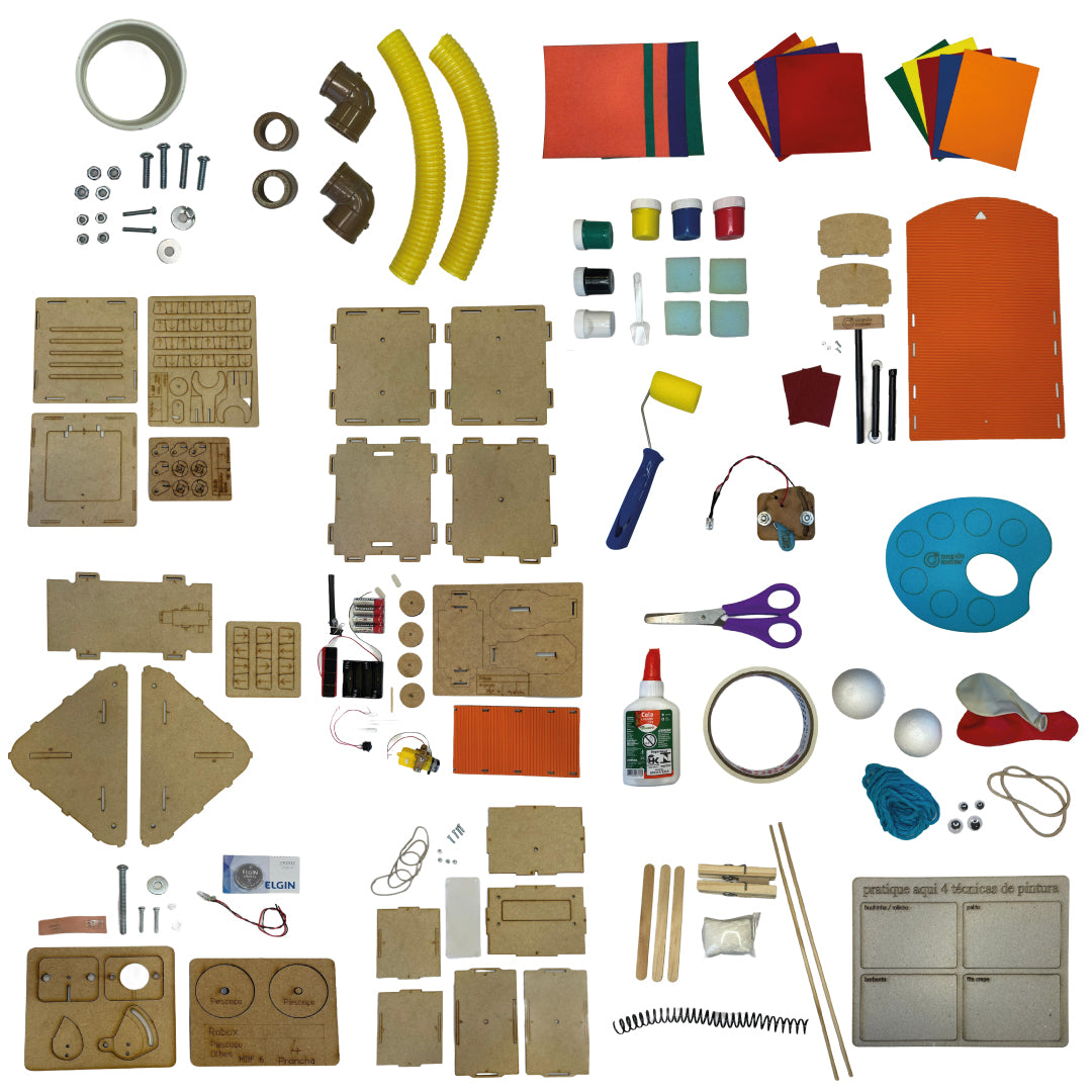 Você receberá na sua casa o kit com todos os materiais e ferramentas para a montagem. O projeto acompanha um vídeo explicativo com o passo a passo para você montar seu Robox. Aproveite para personalizá-lo e deixá-lo mais bonito com o kit criativo!!