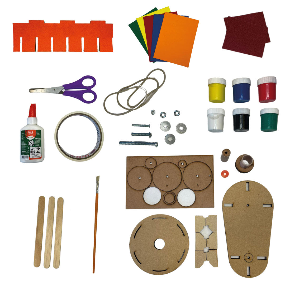 Você receberá na sua casa o kit com todos os materiais e ferramentas para a montagem. O projeto acompanha um vídeo explicativo com o passo a passo para você montar seu Cinema em movimento. Aproveite para personalizá-lo e deixá-lo mais bonito com o kit criativo!!